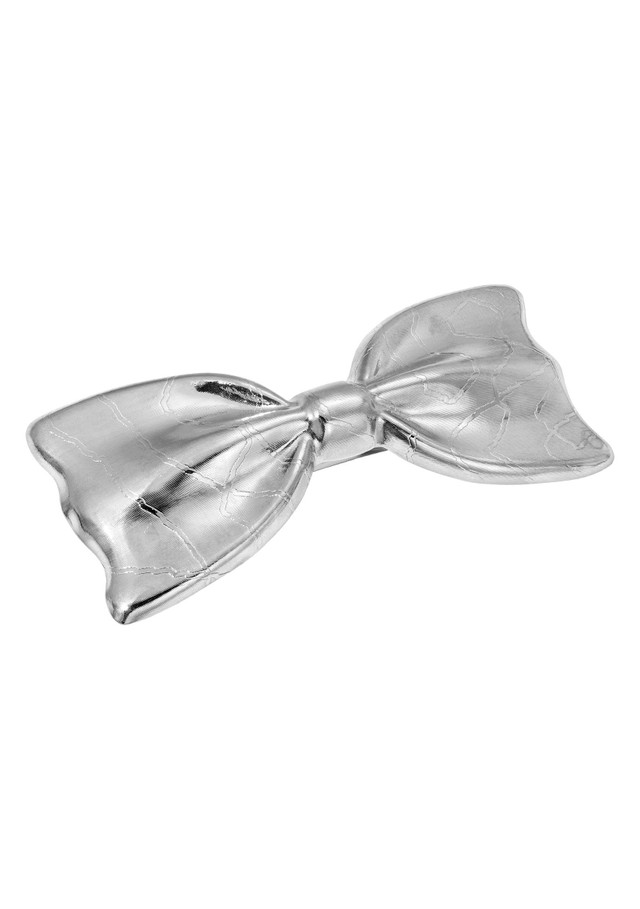 This 1928 Jewelry Bow Hair Barrette features a sculpted bow with etched detailing and a smooth metallic finish. Its vintage-inspired design adds playful charm and polished elegance to any hairstyle, making it a standout accessory for everyday wear or special occasions. Length 3.2 in., width 35mm.