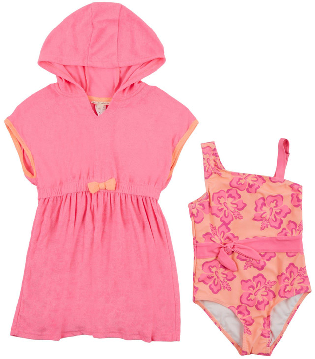 Betsey Johnson Big Girls 2 Pc Terry Cover Up & Swimsuit Set