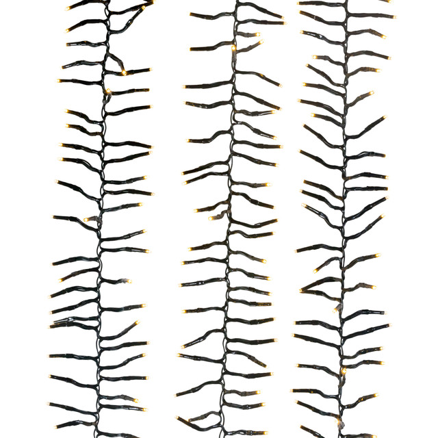 This 480-Light 16-Foot Connectable Warm White LED Cluster Garland from Kurt Adler is a fun, modern addition to your home holiday lighting décor. This LED cluster garland features 480 warm white lights, green wire, a 13-foot lead wire with controller and an outdoor UL adapter. Up to 3 garlands can be connected at one time.