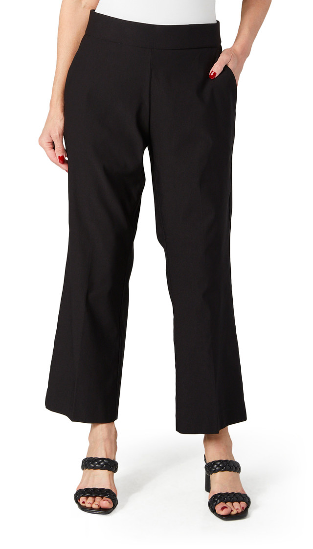 Elevate your everyday style with our Women's Slash Pocket Solid Ankle Pants. Made from a blend of nylon, rayon, and spandex, these pants offer a comfortable and flexible fit. The stylish solid color makes them versatile for any outfit, while the pull-on waistband ensures ease of wear. Featuring side seam pockets for added convenience, these pants have a boot cut and ankle length with a 27-inch inseam, making them perfect for both casual and semi-formal occasions.