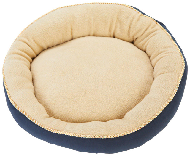 Create a cozy retreat for your pet with the Aspen Round Pet Bed Dog Bed with Elliptical Bolster. Designed in solid colors with elegant gold rope edging, it features a supportive bolster for added comfort and a soft sleeping surface. Ideal for indoor lounging and daily rest. Machine washable for convenient cleaning. Measures approximately 18 in round x 4.5 in.
