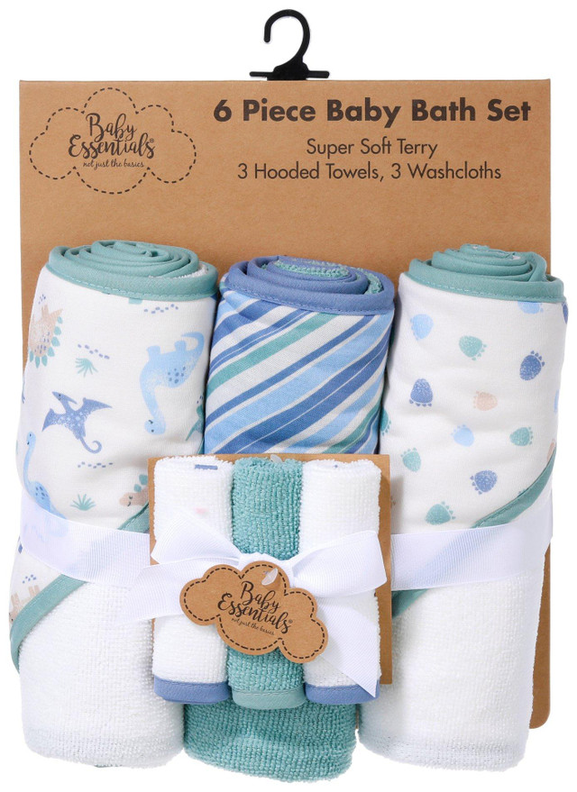 Make bath time fun and cozy with this 6-piece baby bath set, featuring three soft hooded towels and three gentle wash cloths. Designed for comfort and convenience, it is perfect for keeping your little one warm and clean after every splash.