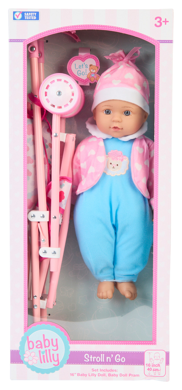 This Baby Lilly Stroll n Go Set is perfect for little caregivers. It includes a soft 16 inch baby doll and a foldable stroller for endless pretend play adventures. Take Baby Lilly for a stroll and enjoy hours of imaginative fun.