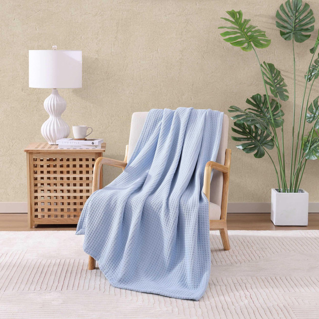 Tommy Bahama's Bahama Coast cotton blankets are perfect to layer onto your bed or to snuggle up on the couch. Constructed with crisp and soft 100% cotton, the bahama coast blankets feature a float weave design. Available in white, ecru, grey and blue; choose the color best suited to your style. Blankets are machine washable for easy care. Perfect for your bedroom as a layering piece or to snuggle up with on the sofa. Machine washable for easy care.