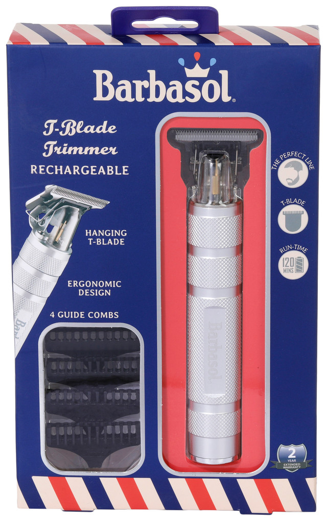 Get crisp, clean lines with this rechargeable T-blade trimmer. The T-blade design helps you achieve the perfect line, while the ergonomic, compact body makes it easy to hold and maneuver for total control. It includes 4 guide combs (1, 2, 3, and 4 mm), giving you flexibility for a variety of grooming styles. Charging for 3 hours provides up to 120 minutes of run time. Comes with USB charging cable, cleaning brush and blade oil. Great gift idea.