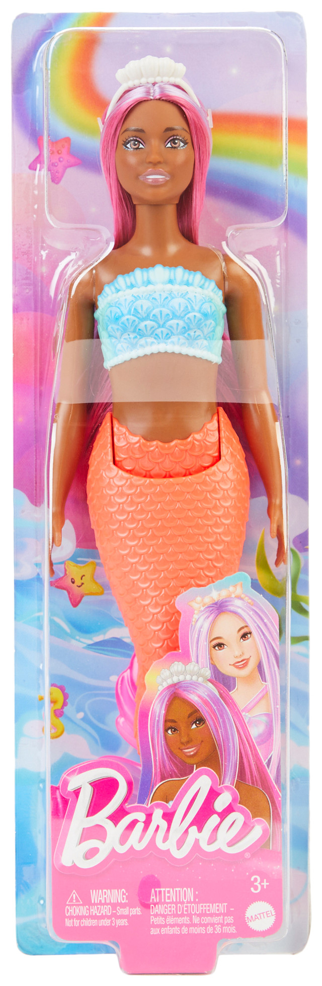 Inspire undersea adventures with the Girls Barbie Mermaid 2 Doll Toy, featuring a shimmering tail, shell inspired top, and crown. Her long multicolored hair adds a magical touch to imaginative play. Ideal for storytelling and creative exploration. Suitable for children ages 3 years and up.