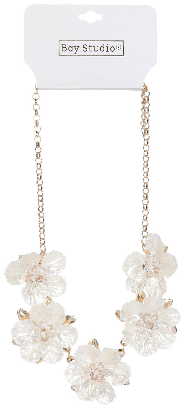 Add a touch of elegance and charm to your jewelry collection with our Gold Tone Flowers Necklace. Featuring beautiful iridescent flower pendants, this piece is adorned with sparkling faux crystal bead embellishments. The timeless gold-tone finish offers a sophisticated look, making it perfect for both everyday wear and special occasions.