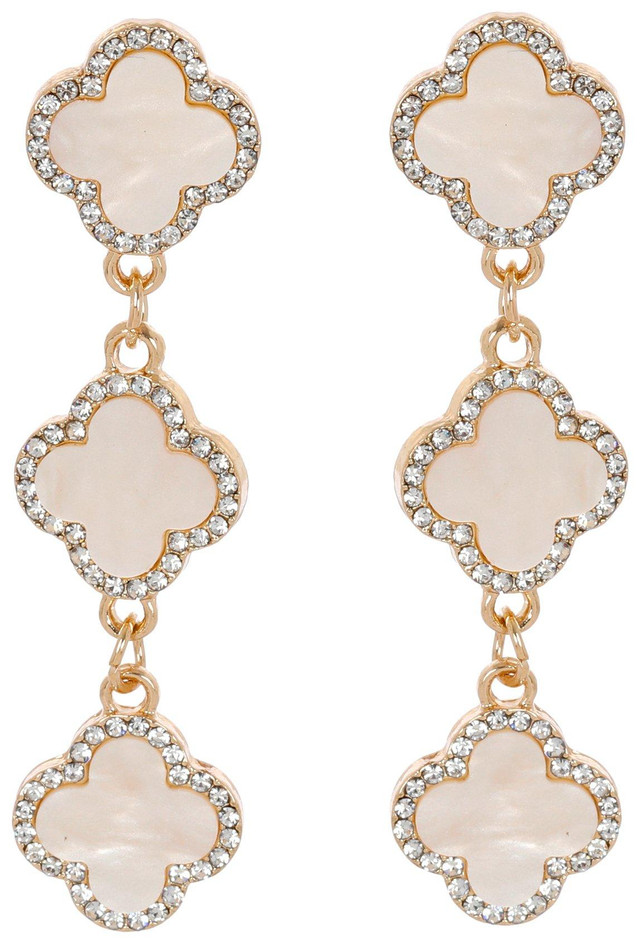 Add a touch of elegance to your look with our Post-Back Dangling Clover Earrings. These charming earrings feature a delightful clover-style shape, adorned with faux gem embellishments. The post-back design ensures a secure fit while offering a modern twist to a classic accessory.