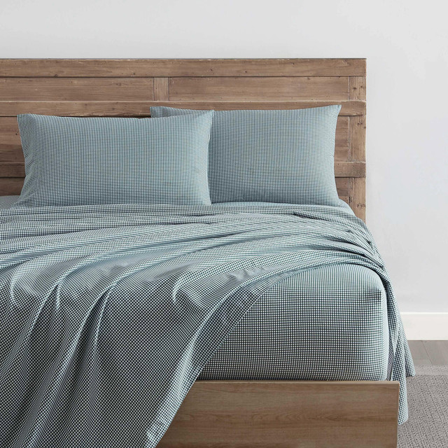 Cozy up each night with Nautica's Bayside Plaid Flannel Sheet Set featuring gingham plaid in a simple checkered pattern. Made of flannel, these sheets are brushed three times for extra softness. Each set is equipped with a fully elastic fitted sheet to help ensure it doesnt move throughout the night. Deep pockets are 15 in. depth (12 in. for twin). Fit mattresses up to 18 in. (up to 15 in. for twin).