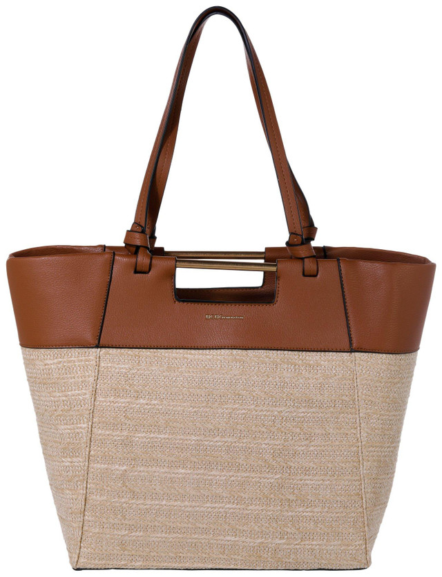 Structured, sleek and effortlessly polished, this tote from BCBGeneration is your new power accessory. Designed for the woman who moves with purpose, this versatile carryall features clean lines, luxe textures and a gleaming metal bar detail that adds just the right amount of edge. Measures: 14 in. H x 13 in. W x 5 in. D. Double Top Handles: 11 in. drop.