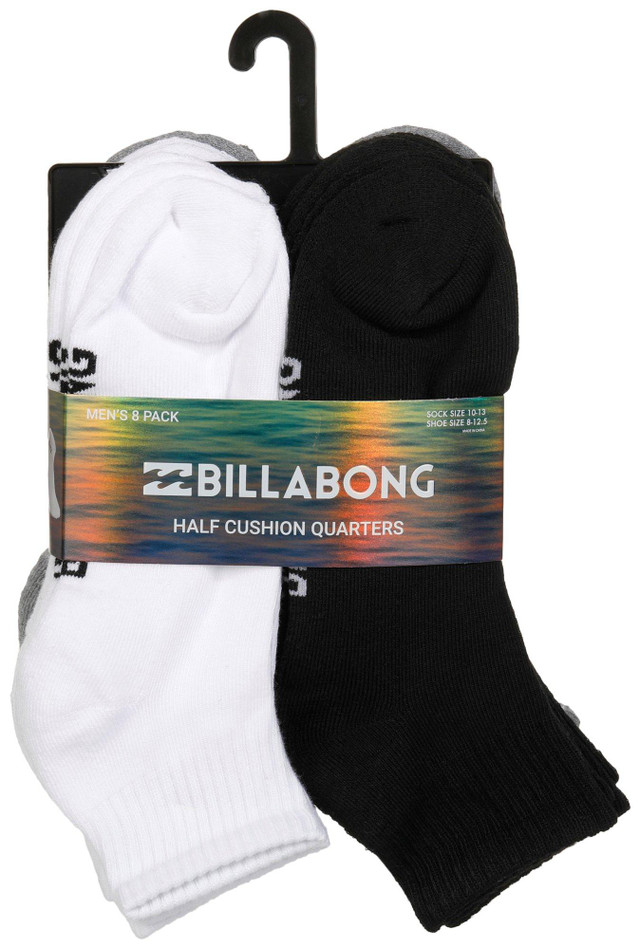 These mens half cushioned quarter socks feature solid black,white and grey color on an ultra-soft poly blend fabrication, sweat wicking, and cushioned soles. Contains 8 pairs of socks with logo print. Fits sock size 10-13. Fabrication 98% polyester, 2% spandex (Exclusive of elastic)..
