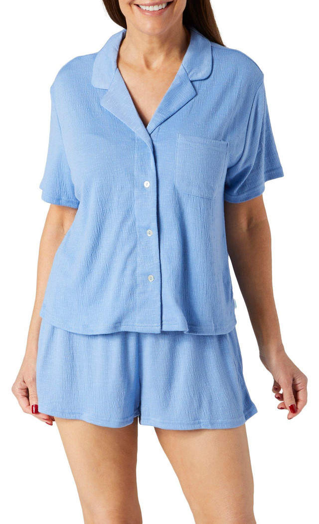The Women's 2-Piece Pajama Shorts Set offers a blend of comfort and style for a restful night. Made from 65% polyester, 28% rayon, and 7% spandex, the fabric provides a soft, breathable feel with just the right amount of stretch. The collared, button-front sleep top features a trendy high-low hem, while the pull-on drawstring shorts offer a relaxed, customizable fit. Perfect for lounging or sleeping in ultimate comfort and style.