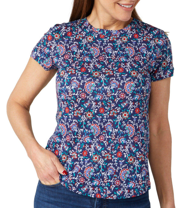 Discover the allure of effortless style with our Petit Print Short Sleeve Top, a perfect blend of comfort and elegance. Made from a premium fabric composition of 96% polyester and 4% spandex, this top ensures a soft, breathable feel and a subtle stretch for a figure-flattering fit.