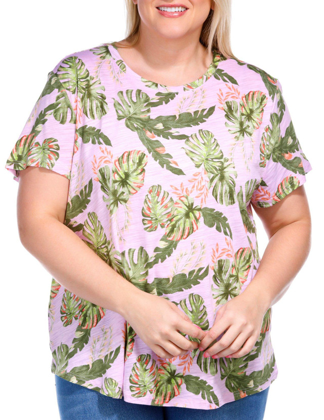 Embrace the essence of summer with the Baja Tropical Short Sleeve Luxey Tee. Featuring a flattering scoop neckline and a vibrant tropical print, this tee is perfect for warm weather and sunny days. Made from soft, breathable fabric, it ensures all-day comfort and ease. Whether you're heading to the beach or a casual outing, this tee adds a touch of tropical flair to your wardrobe. Top length measures approximately 26 in. Fabrication is 60% cotton and 40% modal.