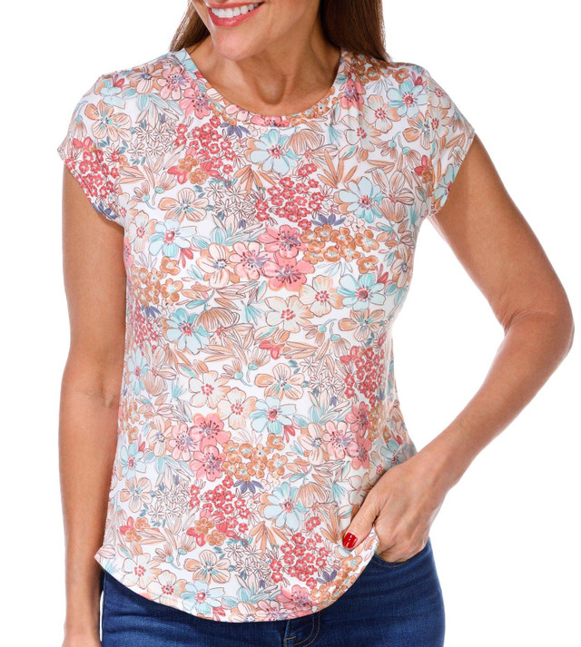 Bring a touch of nature to your look with this floral Sol top for women. Designed with cap sleeves and a round neck, it blends classic style with fresh charm. The soft polyester and spandex fabric ensures comfort all day, making it a perfect pick for both relaxed and polished outfits.