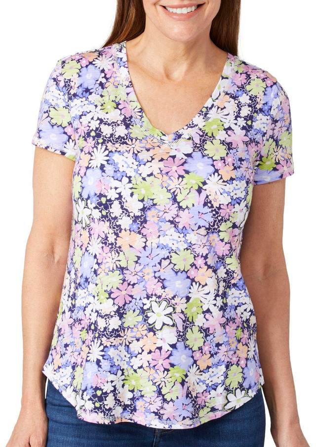 Embrace the essence of summer with the Daisy Short Sleeve Luxey Tee. Featuring a flattering V neckline and a vibrant daisy print, this tee is perfect for warm weather and sunny days. Made from soft, breathable fabric, it ensures all-day comfort and ease. Whether you're heading to the beach or a casual outing, this tee adds a touch of tropical flair to your wardrobe. Top length measures approximately 26 in. Fabrication is 60% cotton and 40% modal.