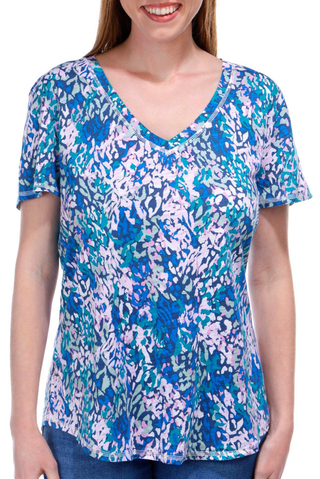 Embrace the essence of summer with the Soft Cheetah Print Short Sleeve Luxey Tee. Featuring a flattering V neckline and a vibrant print, this tee is perfect for warm weather and sunny days. Made from soft, breathable fabric, it ensures all-day comfort and ease. Whether you're heading to the beach or a casual outing, this tee adds a touch of tropical flair to your wardrobe. Top length measures approximately 26 in. Fabrication is 60% cotton and 40% modal.