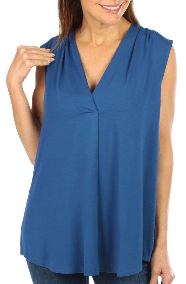 This women's solid sleeveless V-neck top combines sleek style with a flattering fit. The V-neckline adds a touch of elegance, while the sleeveless design keeps it cool and comfortable. Perfect for layering or wearing on its own, its a versatile piece that can be dressed up or down for any occasion. The top length measures approximately 24 in.