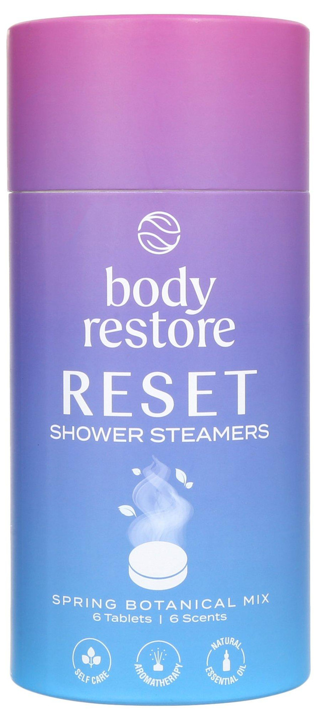 Enjoy the ultimate at-home spa experience with these Reset shower steamers! They feature a spring botanical mix of 6 tablets in 6 unique scents. Scents include eucalyptus, citrus, jasmine, chamomile, lavender, and bergamot spring. Dial down your stress and prepare for relaxation with a shower experience using this blend of scents. Made with essential oils.