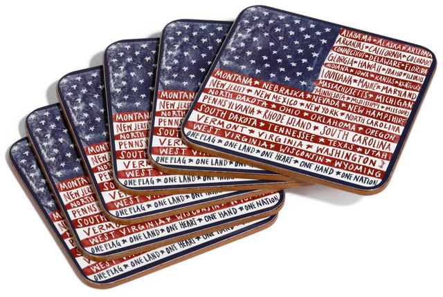 Protect your surfaces in star-spangled style with this 6-Pack Patriotic Coaster Set! Featuring bold red, white, and blue designs, each coaster adds a festive touch to your table while keeping it clean and dry. The cork backing helps prevent slipping and protects against scratches. Each measures 4 in x 4 in x 0.25 in.
