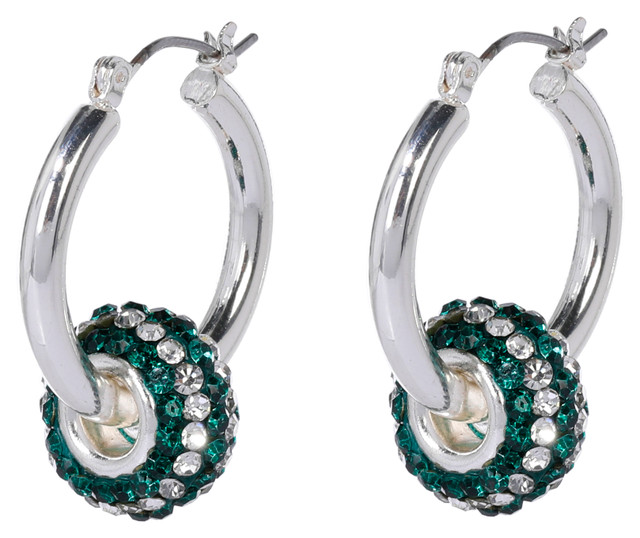 These Silver Tone Hoops are perfect for adding stylish flair to a holiday wardrobe. Featuring a close back design and large green bead on each hoop, this eye catching piece is perfect for holiday parties or everyday wear.