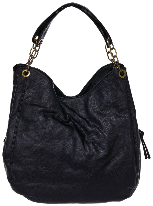This solid satchel handbag features a textured pebble design with a structured silhouette for everyday style. The interior includes three compartments, with a zippered center section for secure storage. A fully lined interior helps keep essentials organized, making this bag both functional and polished for daily use. Measures approximately 13 in x 14 in x 6 in.