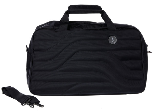 Designed for style and function, this sleek duffel from the Ulisse collection features clean lines inspired by Milans subway system. Unique outer stitching gives it a sporty, urban edge. Double top handles and a top zip closure offer easy access, while an outer luggage strap and zip pocket add convenience. Inner slip pockets keep essentials organized. Lightweight yet durable in polyester and PVC. Lined for extra protection. Measures 18 x 1.5 x 10.5 inches. Weighs about 1.5 lbs.