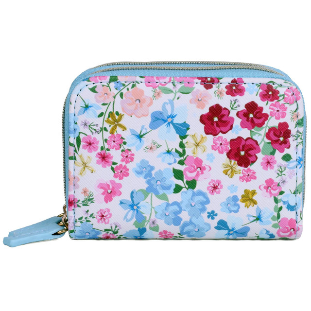 Add a pop of fun to your accessories with this dainty meadows print zip-around wallet. Featuring a spacious accordion-style interior with card slots and compartments, its perfect for organizing cash, coins, and cards. Compact, cute, and travel-ready!