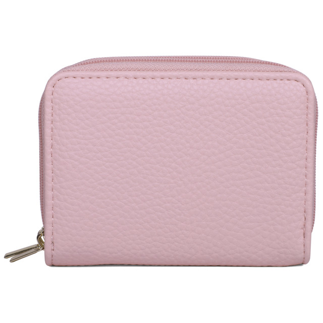 Pebble Vegan Leather with RFID blocking lining Gold tone Hardware, the Wizard Wallet features an outside ID window, full zipper section with 9 accordion credit card pockets and 2 utility pockets, gusset zipper back section with 2 utility pockets. Measures: 3 x 4 x 1.5.
