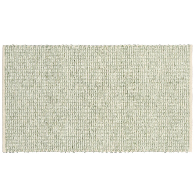 This handwoven accent rug features calming neutral tones and chic simplicity with non-skid backing. It adds understated elegance and cozy comfort, creating a serene and inviting space. Fabrication is 51% polyester, 39% cotton, 7% rayon, and 3% other fiber.