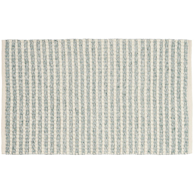 This handwoven accent rug features chic simplicity and serene neutral tones. It adds timeless elegance and a calming touch to any room, creating a warm and inviting atmosphere. Fabrication is 67% polyester, 28% cotton, and 5% other fibers.