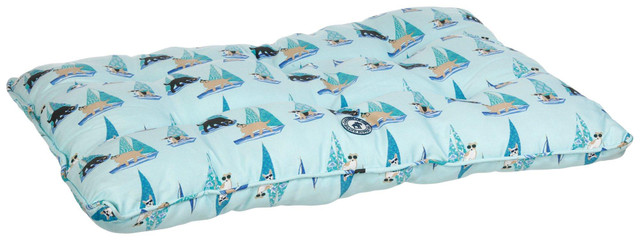 Give your furry friend a cozy retreat with this ultra-soft, tufted pet bed. Made from a machine-washable polyester/cotton blend with plush knit fabric, it features resilient recycled fiberfill that maintains shape and comfort. Eco-friendly and stylish, its perfect for pets who love to lounge. Measures 27 in x 36 in x 2in .