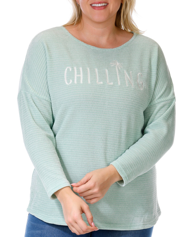 Stay cozy and relaxed in the Womens Long Sleeve Chilling Sweater. Made from 100% polyester, this soft and comfortable sweater offers a warm, lightweight feel perfect for lounging or casual outings. Designed with a relaxed fit for easy movement, its the ideal everyday piece for effortless comfort and laidback style.