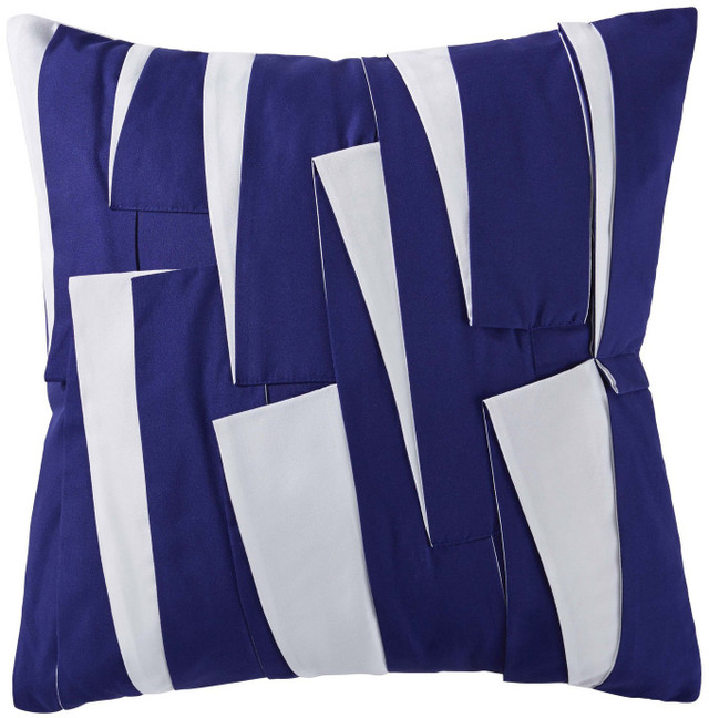 The Garden Bloom Decorative Pillow by Christian Siriano features a unique fabric manipulation design in white and indigo blue, and 100% polyester face and fill. Pillow measures 18''L x 18''W.
