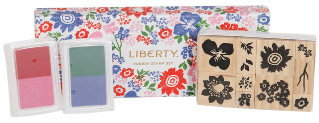 The Liberty Classic Floral Rubber Stamp Set features 11 beechwood-handled rubber stamps and 4 ink colors packaged in a sturdy box. Create endless multi-colored floral combinations, perfect for crafty gifts, custom notes, gift wrap, or decorations! includes: 4 Ink Pads & 11 Wooden Stamp Blocks