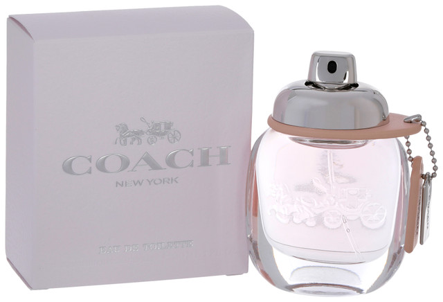 This fragrance is designed to capture the vibrant energy of New York City. The scent features top notes of raspberry, pear, and pink pepper, with a heart of Turkish rose and gardenia. Base notes include suede and musk. The bottle design incorporates iconic Coach codes, such as a turnlock-shaped spray cap, a leather hangtag, and an engraved horse and carriage logo. Contains 30 ml (1.0 fl. oz.) spray bottle.