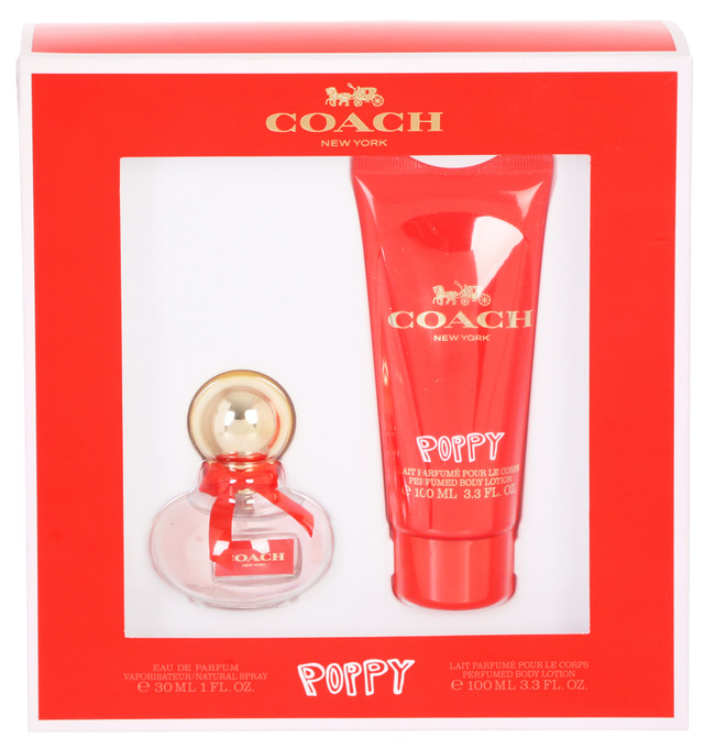 Colorful yet feminine, Coach Poppy is impactful and optimistic. Poppy is an invitation to seize a perfect spring day. Top notes are Cucumber, Mandarin Orange and Freesia; middle notes are Sweet Notes, Water Lily, Rose, Jasmine and Gardenia; base notes are Marshmallow, Vanille, Sandalwood and Virginia Cedar. Contains 1 fl oz Eau de Parfum and 3.3 fl oz Perfumed Body Lotion. Made in France.