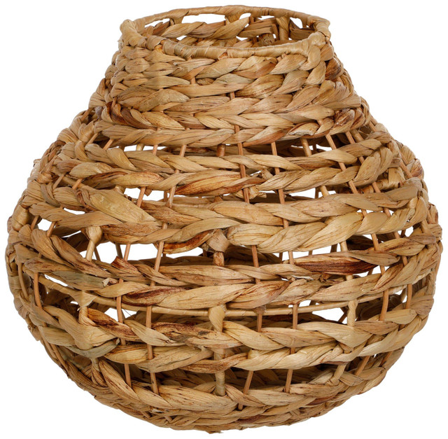 Introducing the 12-inch Water Hyacinth Vase, a stunning addition to your home décor. This elegant vase is crafted from natural water hyacinth, showcasing its intricate woven texture and organic beauty. Measuring 12 inches in height, it is perfect for displaying tall floral arrangements or standing alone as a statement piece. The vase's natural materials and earthy tones bring a touch of nature indoors, creating a warm and inviting atmosphere in any room.