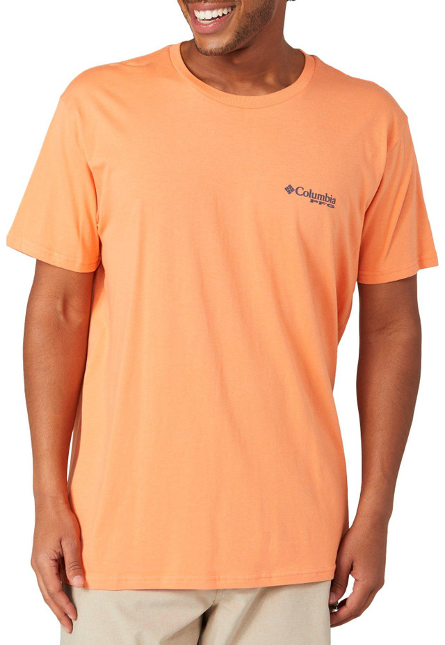 Gear up for outdoor adventures with our Men's PFG Ballard T-Shirt. Made from 100% cotton, this t-shirt features brand script on the chest and a graphic design on the back. Perfect for comfort and style during your outdoor activities.