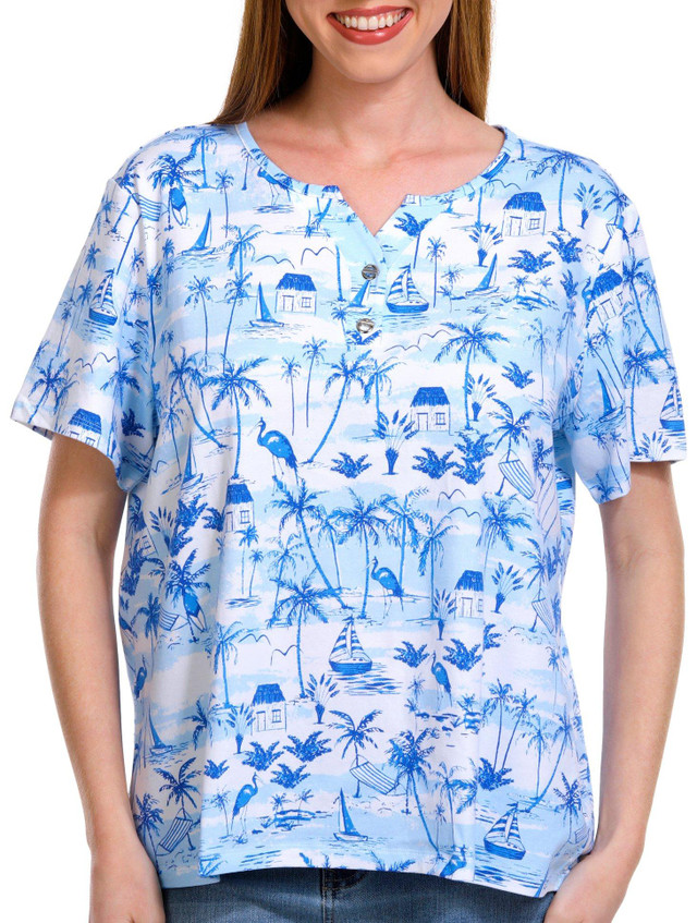 Stay stylish and comfortable with the Petite Henley Short Sleeve Top. Made from a soft and stretchy blend of 95% cotton and 5% spandex, this top offers a perfect fit for all-day wear. The classic Henley neckline, paired with a charming printed design, adds a touch of casual elegance. Whether you're dressing it up or keeping it laid-back, this versatile piece is a must-have for your wardrobe!ook.