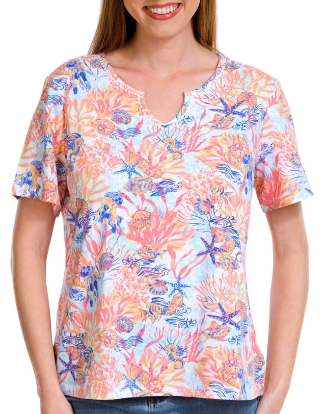 The Petite Print Split Neck Short Sleeve Top combines comfort and style effortlessly. Made from a soft 95% cotton and 5% spandex blend, it offers a breathable, stretchy fit for all-day comfort. The split neck design adds a subtle yet stylish touch, while the print brings a lively, trendy vibe. With a 25-inch length, this top is perfect for casual wear or dressing up for a polished look.