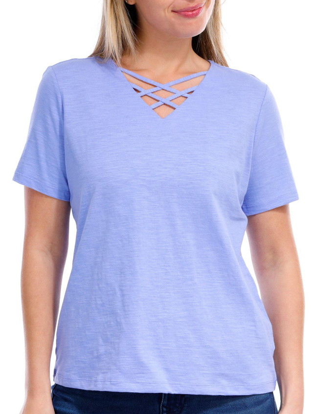 Elevate your everyday style with the Plus Solid V-Neckline Short Sleeve Top. Made from 100% soft and breathable cotton, this versatile top offers superior comfort and a flattering fit. The classic V-neckline adds a touch of elegance, making it easy to dress up or down for any occasion. Whether paired with jeans for a casual outing or layered under a blazer for a polished look, this top is a wardrobe essential that combines simplicity with effortless style.