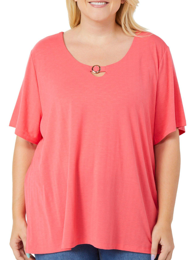Made from a blend of 60% polyester, 32% rayon, and 8% spandex, this top offers a soft, stretchy fabric that feels great all day long. The chic keyhole neckline with a ring detail adds a stylish twist, making it a standout piece for casual outings or semi-dressy occasions. Its versatile design pairs effortlessly with jeans, skirts, or trousers, giving you endless styling possibilities.