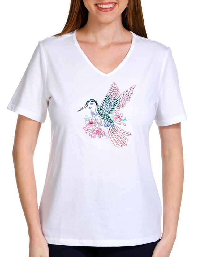 Elevate your everyday wardrobe with this stunning Women's Embellished V-Neck Short Sleeve Top. Crafted from a premium 60/40 cotton-polyester blend, this top offers the perfect combination of softness, breathability, and durability. Its classic V-neckline is enhanced with delicate embellishments, adding a touch of sparkle that effortlessly transitions from casual to chic.