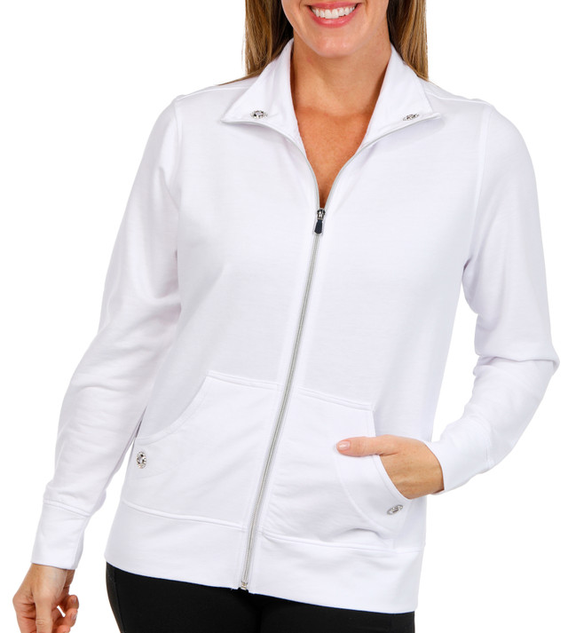 Coral Bay Womens Long Sleeve Solid Zip Knit Grommet Jacket