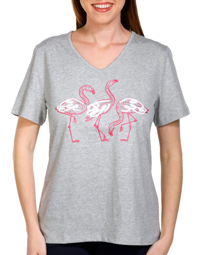 Add a touch of sparkle to your everyday look with this Women's Short Sleeve Embellished Tee. Crafted from a comfortable and durable 60/40 cotton-polyester blend, this top is designed for all-day ease and style. The embellishments on the front lend a subtle yet eye-catching detail that elevates its simple design. Top length measures approximately 24 in.