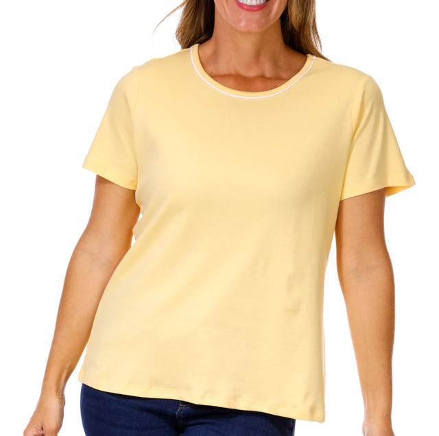 Coral Bay Womens Short Sleeve Solid Scoop Neck Piping Top