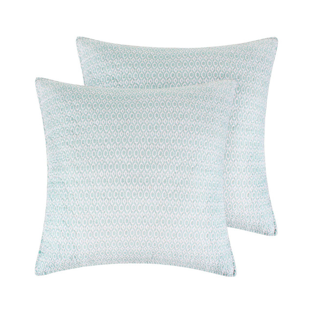 The Cressida Quilted Euro Sham by Levtex Home is inspired by antique French wallpaper. Offered in teal and cream, this design will immediately transform your bedroom. These shams feature small ikat design. The Euro Sham 2(26x26in.) is microfiber, quilted with a cotton rich filler and is machine washable. Pillow inner not included. Enjoy for years to come!