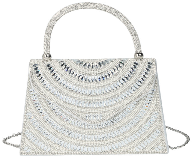 Add a touch of elegance to your evening look with the Top Handle Shimmer Flap Clutch. Featuring a sparkling finish and a versatile design, it can be worn crossbody or carried by the handle for effortless style. The magnetic clip closure keeps your essentials secure, while the interior slip pocket offers convenient storage. Measuring approximately 9.5 in x 6.5 in x 2.5 in, this chic clutch is the perfect accessory for any special occasion.
