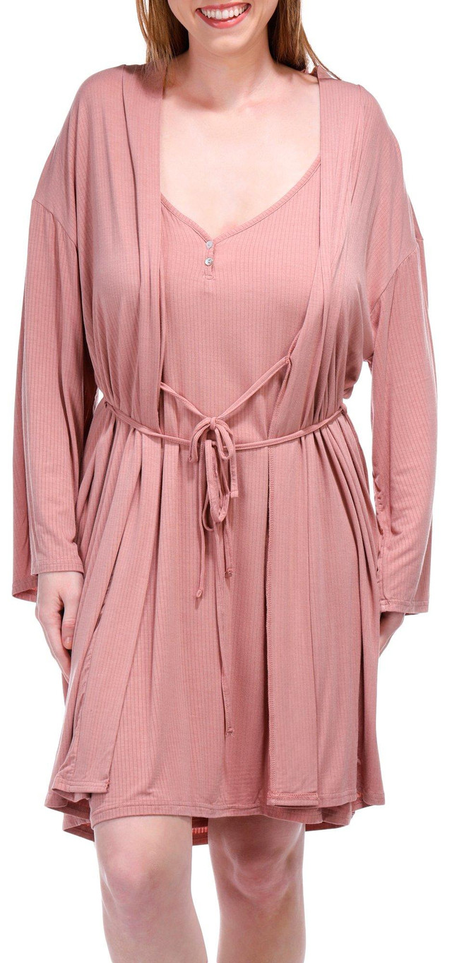 Introducing this luxurious 2-piece sleepwear set, perfect for ultimate comfort and style. This set includes a long sleeve robe and a sleeveless chemise, both crafted from soft, breathable fabric that feels gentle against your skin. The robe provides an extra layer of warmth and elegance, while the chemise ensures a comfortable fit for a restful night's sleep. Fabrication is 95% rayon, 5% spandex.